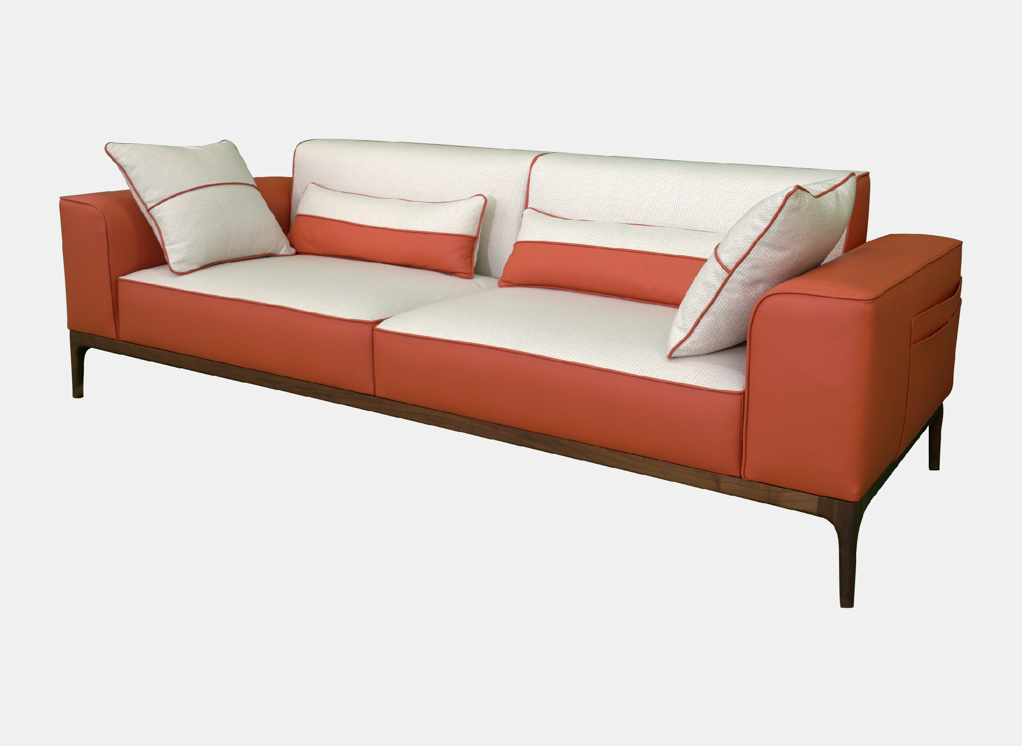 歐杏沙發_3人座沙發_NAPPA牛皮+布沙發_橘白撞色沙發