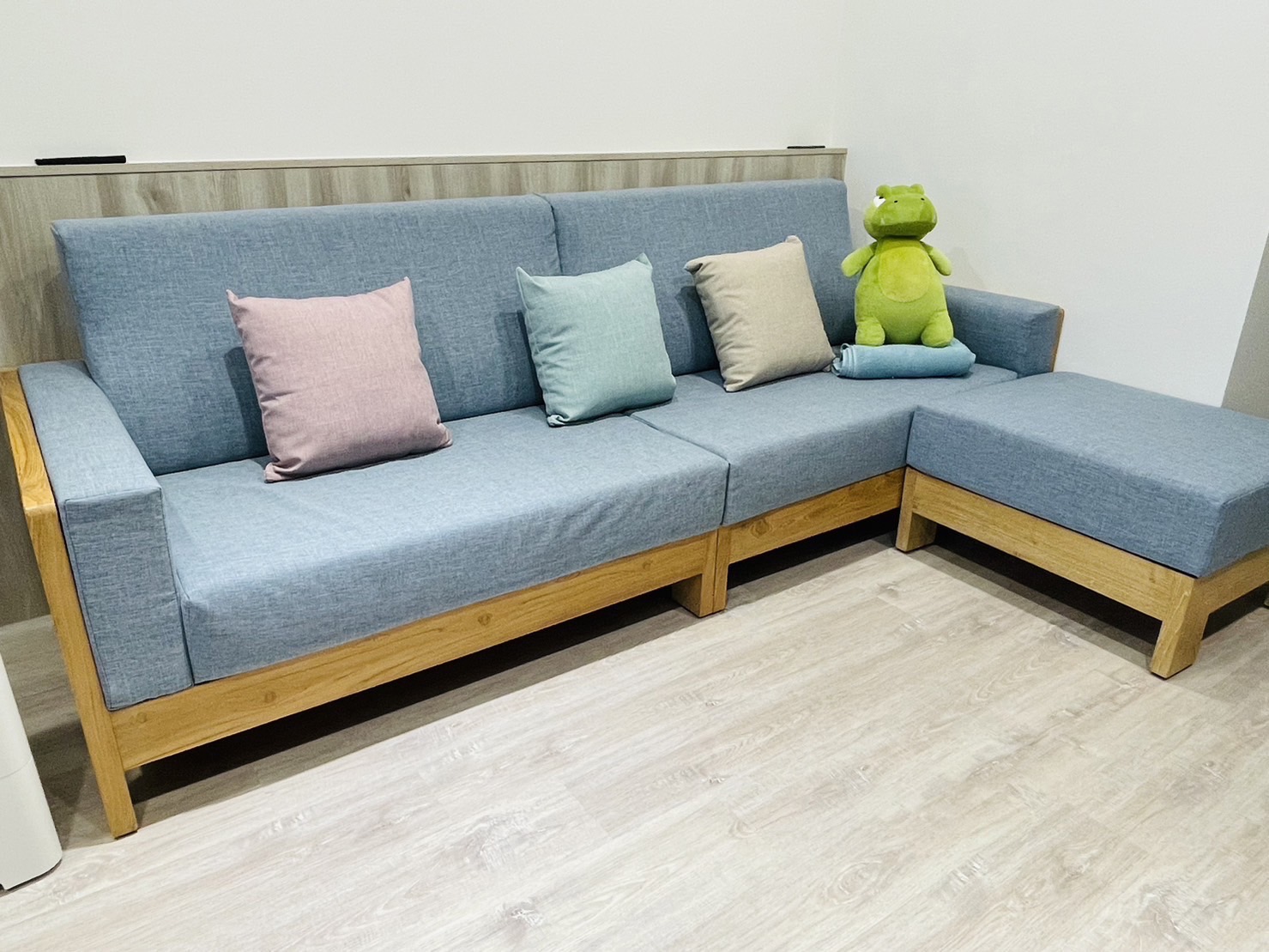 #米諾帝組椅 的淺藍椅墊讓客廳變得舒適平靜
